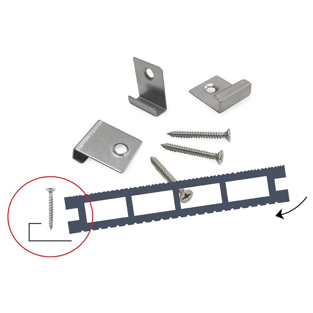 Each starter clip or T-clip comes with 1 x stainless steel screw.